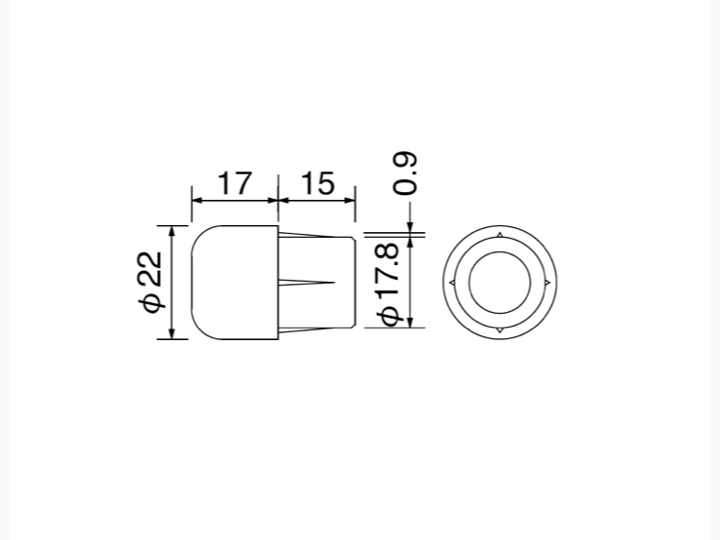 製品情報 φ22半球型サイドキャップ 品番:HB0320W / ホワイト / JAN:4936887206104 550円(税込) ナイロン製 外径φ22mm 打ち込みタイプハンドル内径φ18mmに適合1set 2ヶ入 適合車種(備考) -